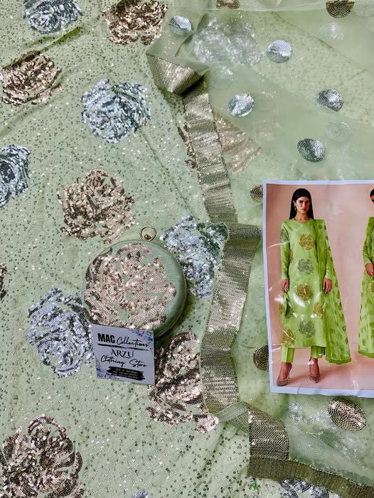 BRQ Embroidered Mehndi Luxury Chiffon Dress