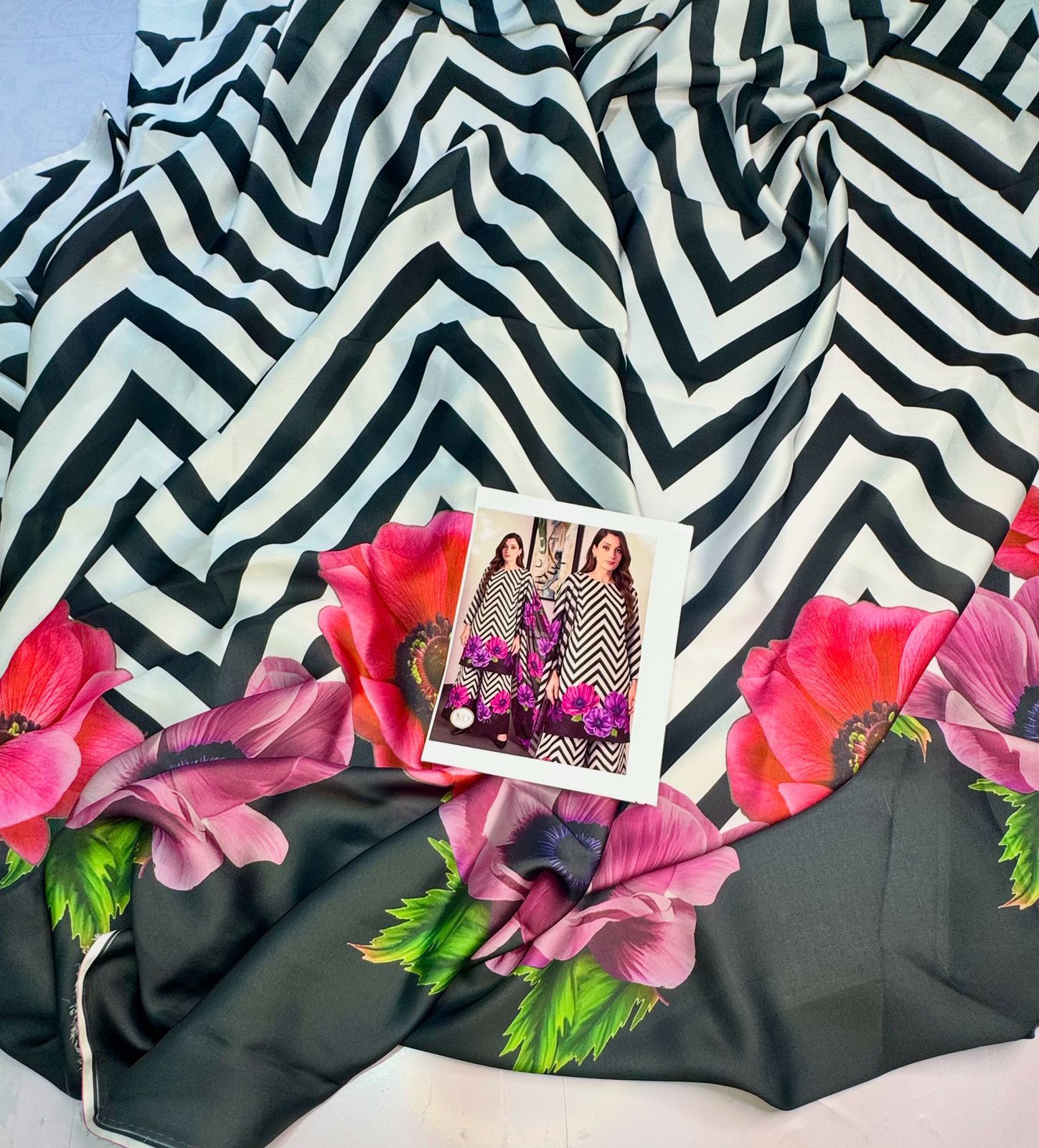 Floral Printed Black & white Shamoz Silk 3pcs Dress
